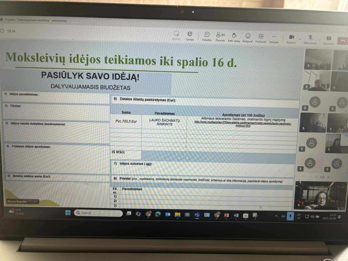 Mokiniams buvo primintos projekto veiklos. Iki spalio 16 dienos mokiniai gali teikti idėjas, kaip būtų galima pagerinti gimnazijos aplinką ir gerovę. Spalio 17 dieną konsultacinė grupė, išnagrinėjusi visus mokinių pasiūlymus, išrinks tris geriausias idėjas. Spalio 28 dieną vyks šių idėjų pristatymas, o spalio 30 dieną – balsavimas.