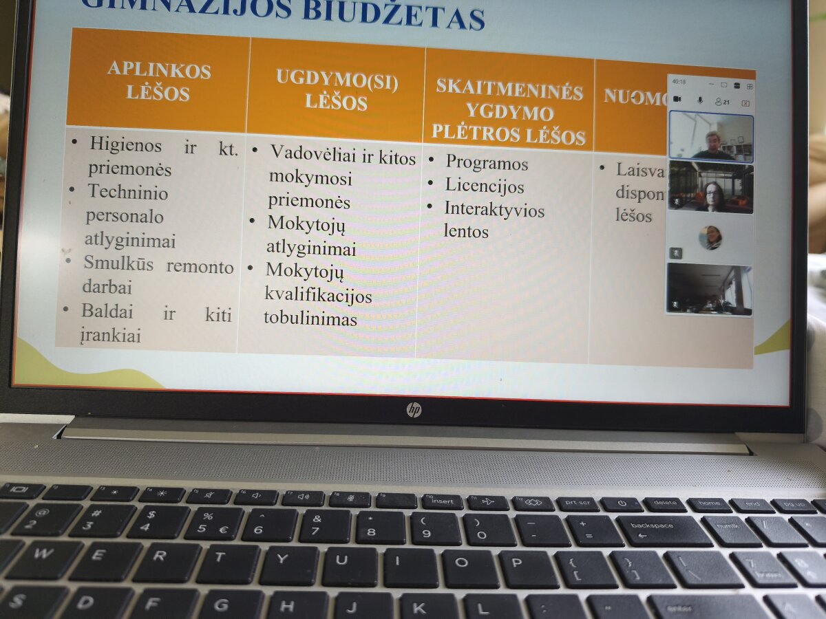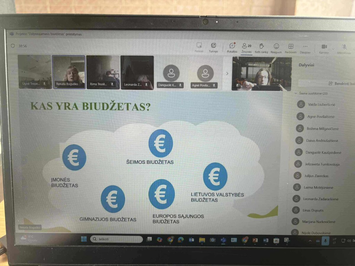 Nuotolinis pristatymas buvo surengtas visai Salininkų gimnazijos bendruomenei. Jo metu pristatyta biudžeto sąvoka, mokiniams paaiškinta, kas yra biudžetas ir kieno jis gali būti – šeimos, gimnazijos, valstybės ar Europos Sąjungos. Vilniaus Salininkų gimnazijos biudžetą pristatė gimnazijos direktorė Jelizaveta Tumlovskaja.