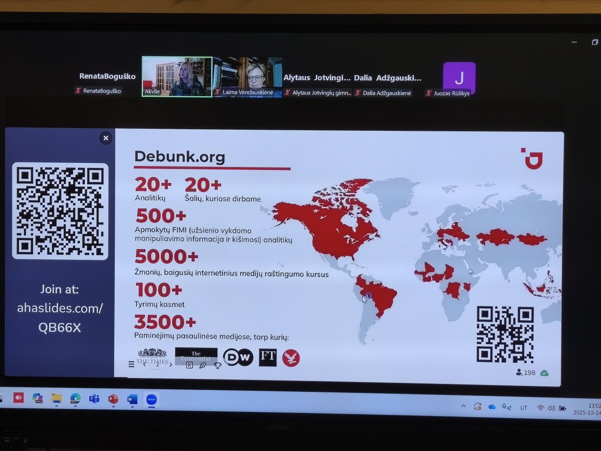 Šiandien gimnazijos bendruomenė kartu su kitomis Lietuvos MEPA mokyklomis dalyvavo virtualiose dirbtuvėse apie dezinformaciją.