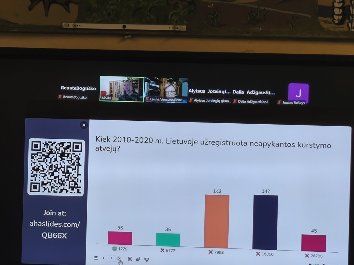 Mokiniai klausėsi ir aktyviai atsakinėjo į viktorinos klausimus naudodamiesi telefonu. Jie pagilino savo žinias apie dezinformaciją ir sužinojo, kad aplink mus gausu melo ir netikros informacijos, kurią dažnai kuria botai ar dirbtinis intelektas.