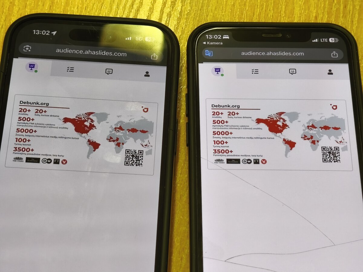 „Debunk.org“ komanda pakvietė į interaktyvią kelionę ir trumpą viktoriną, kurios metu dalyviai galėjo pažvelgti į šiuolaikinę dezinformacijos ir neapykantos ekosistemą – nuo stereotipų, memų ir kalbos, kuria skleidžiama neapykanta, iki netikrų paskyrų, botų ir Kremliaus propagandos industrijos.