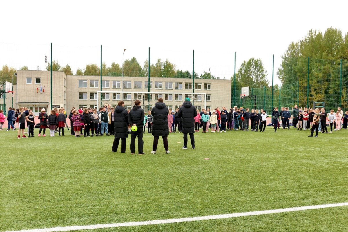 Į gimnazijos stadioną atvyko „Žalgirio“ futbolo akademijos atstovai, kurie supažindino vaikus su akademijos veikla, išdalijo atributikos ir pakvietė ateityje prisijungti prie akademijos. Vaikai mankštinosi, žaidė judriuosius žaidimus ir, žinoma, išbandė populiariausią sporto šaką pasaulyje – futbolą.
