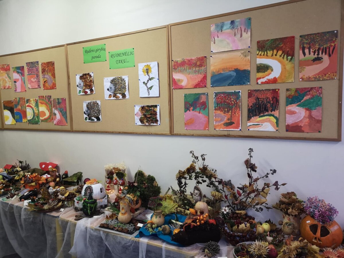 Tradiciškai spalio paskutinę savaitę pradinėje mokykloje vyksta mokinių darbelių paroda iš rudens gėrybių. Vaikai kūrė išradingas kompozicijas iš moliūgų, morkų, bulvių, gilių, kankorėžių, lapų ir kitų gamtos dovanų.