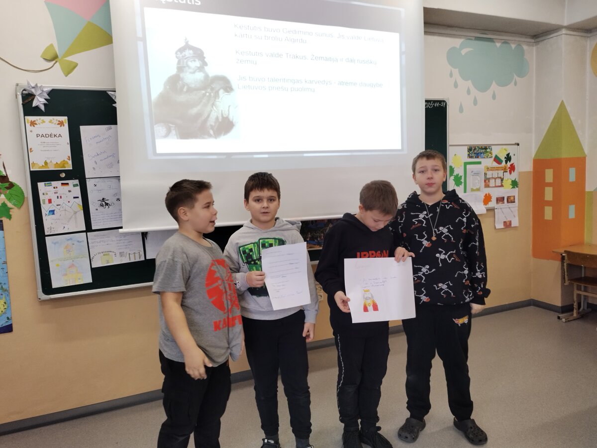 Trečiokai ir ketvirtokai sužinojo naujų faktų apie Lietuvos kunigaikščius, susipažino su senoviniais posakiais, prisiminė patarles ir jų išmintį. Jie taip pat aiškinosi, kaip žinios apie medžiagų tankį padeda kurti naujas technologijas, ir atliko įvairius bandymus su buitinėmis priemonėmis. Kiekvienas mokinys savo rankomis pasigamino Kalėdinę dekoraciją iš šiaudelių.