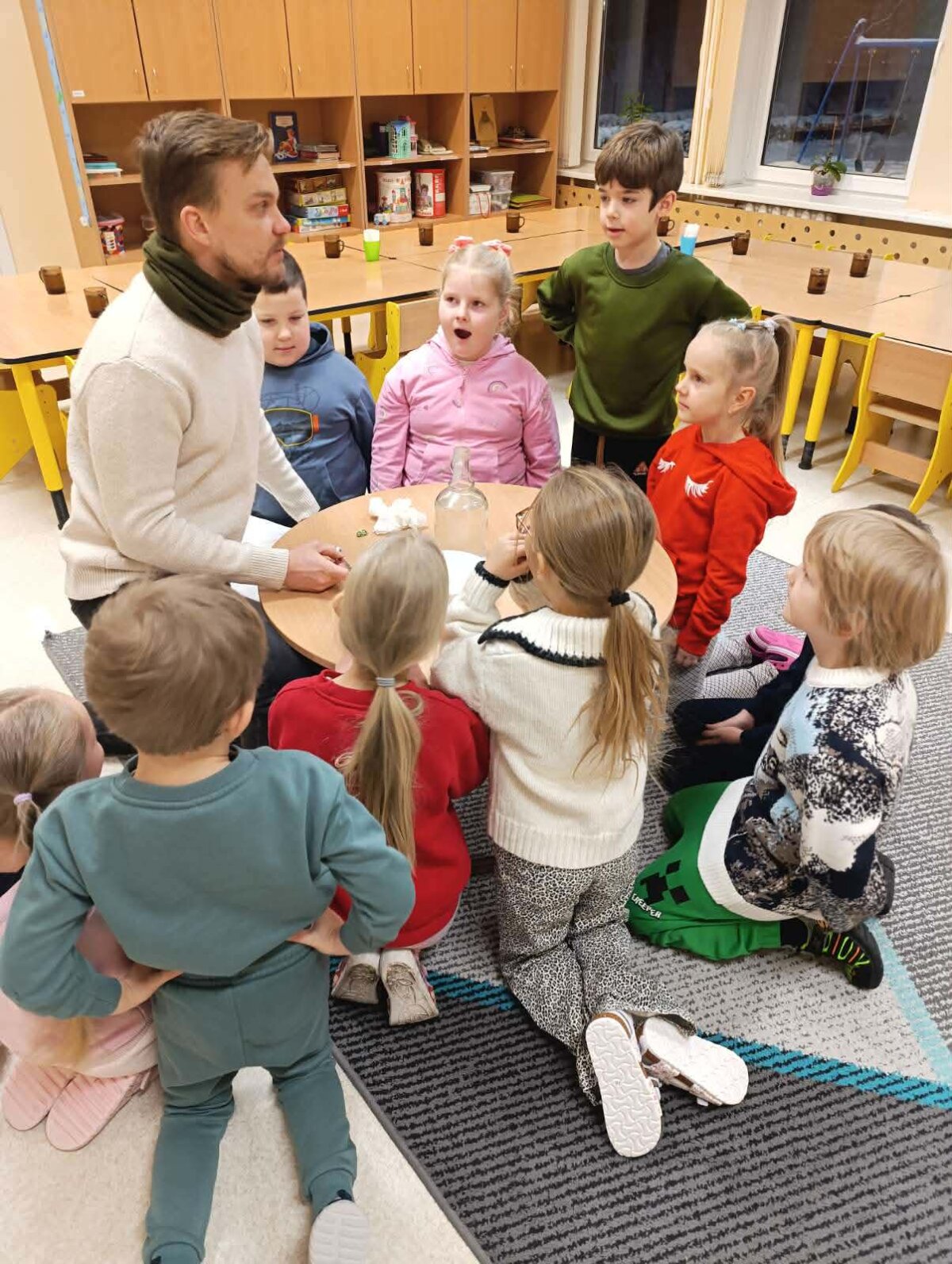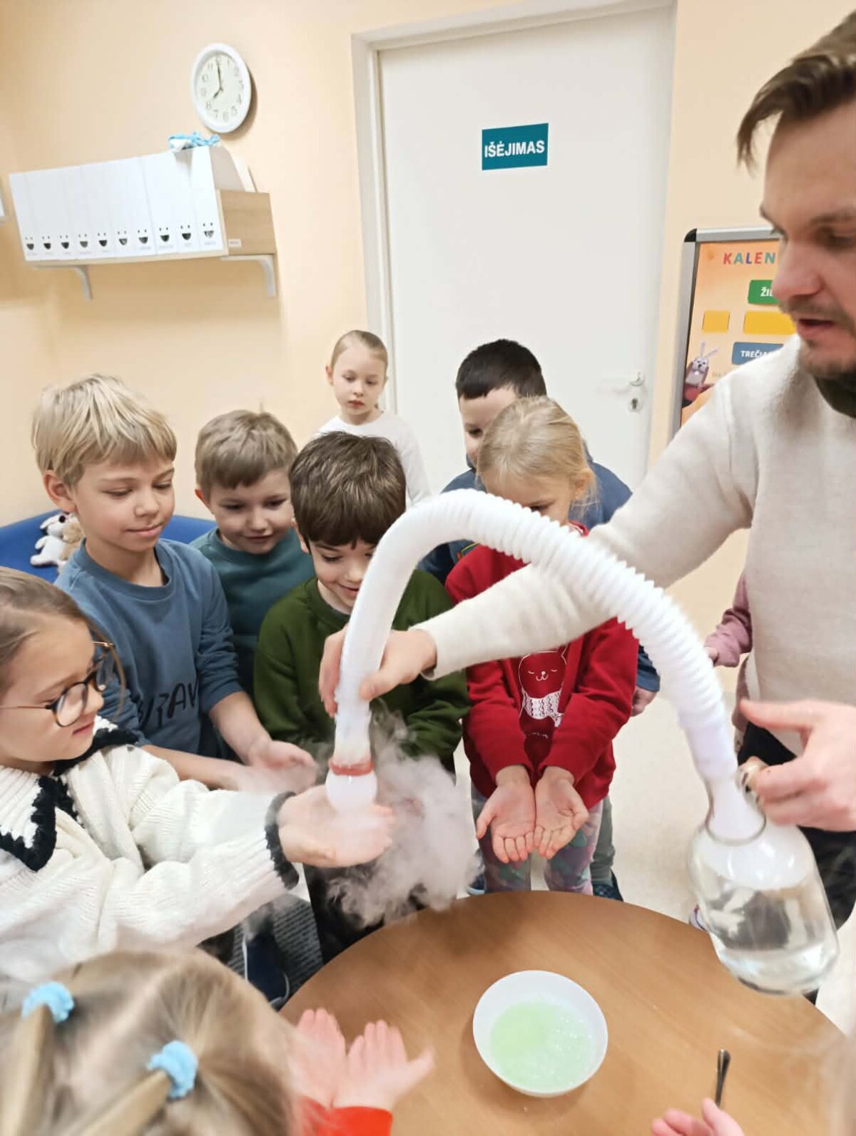 Sausio 19 d. klasėje vyko eksperimentinė veikla „Sausas ledas“, kurios metu mokiniai tyrinėjo, stebėjo ir patys aktyviai dalyvavo bandymuose, ugdydami smalsumą ir pažinimo gebėjimus. Ši veikla skatino vaikus drąsiai klausti, stebėti reiškinius ir atrasti mokslą per patirtį.