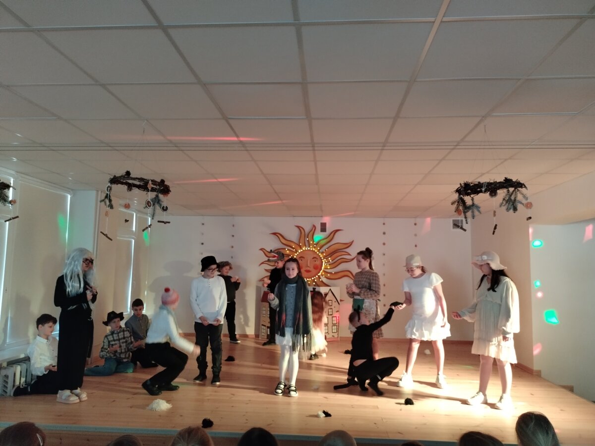 Sausio 21 d. į gimnazijos aktų salę sugužėjo priešmokyklinių grupių vaikai ir pradinių klasių mokiniai – jie buvo pakviesti į spektakliuką „Švelnukai“, sukurtą pagal Claude Steiner kūrinį. Spektakliuke vaidino 4 B ir 4 C klasių mokiniai. Dainelės apie švelnukus žodžius kūrė patys mokiniai kartu su mokytoja Gene, o šokį pagal dainą parengė šokių mokytoja Laima. Tai spektakliukas apie gėrį, dalijamą kitiems, kuris visuomet nugali blogį. Šilti švelnukai – tarsi tarpasmeninių santykių metafora, primenanti, ko kiekvienam iš mūsų nuolat reikia. Kartais, kad išgelbėtum žmogų, tereikia jį paprasčiausiai apkabinti.