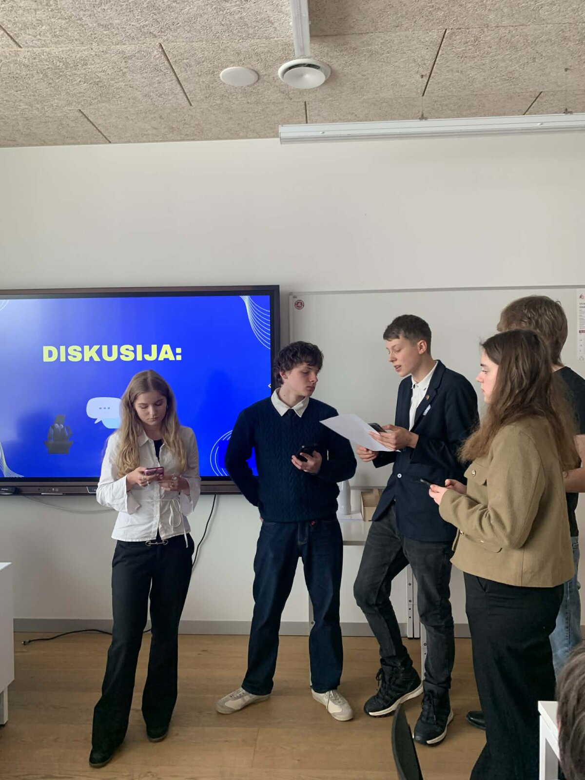 Dirbtuvių metu mokiniai kalbėjo apie dezinformacijos įtaką visuomenei, sužinojo, kaip svarbu atsakingai vertinti informaciją ir nepasitikėti viskuo, ką mato internete ar socialiniuose tinkluose. Jie diskutavo, dalijosi savo nuomonėmis ir pavyzdžiais iš kasdienio gyvenimo. Taip pat nagrinėjo ES biudžetą ir jo paskirstymą – buvo įdomu sužinoti, kur keliauja lėšos ir kaip sprendžiama, kam jos skiriamos. Mokiniai susipažino ir su Europos Sąjungos teisėkūros sistema.