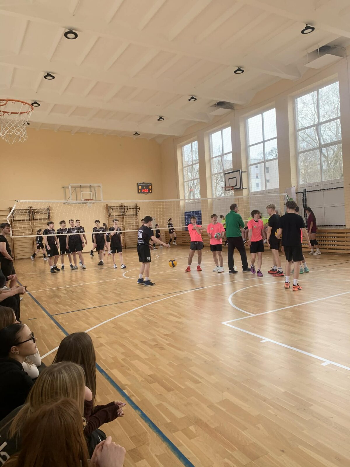 Sporto salėje netrūko žiūrovų – susirinko gausus būrys sirgalių, kurių palaikymas kūrė puikią atmosferą ir įkvėpė žaidėjus siekti geriausių rezultatų. Varžybas stebėjo mokiniai – nuo šeštokų iki gimnazistų, o komandų palaikyti atvyko ir mokytoja Agnė bei mokinių mylima, buvusi fizinio ugdymo mokytoja Genutė.