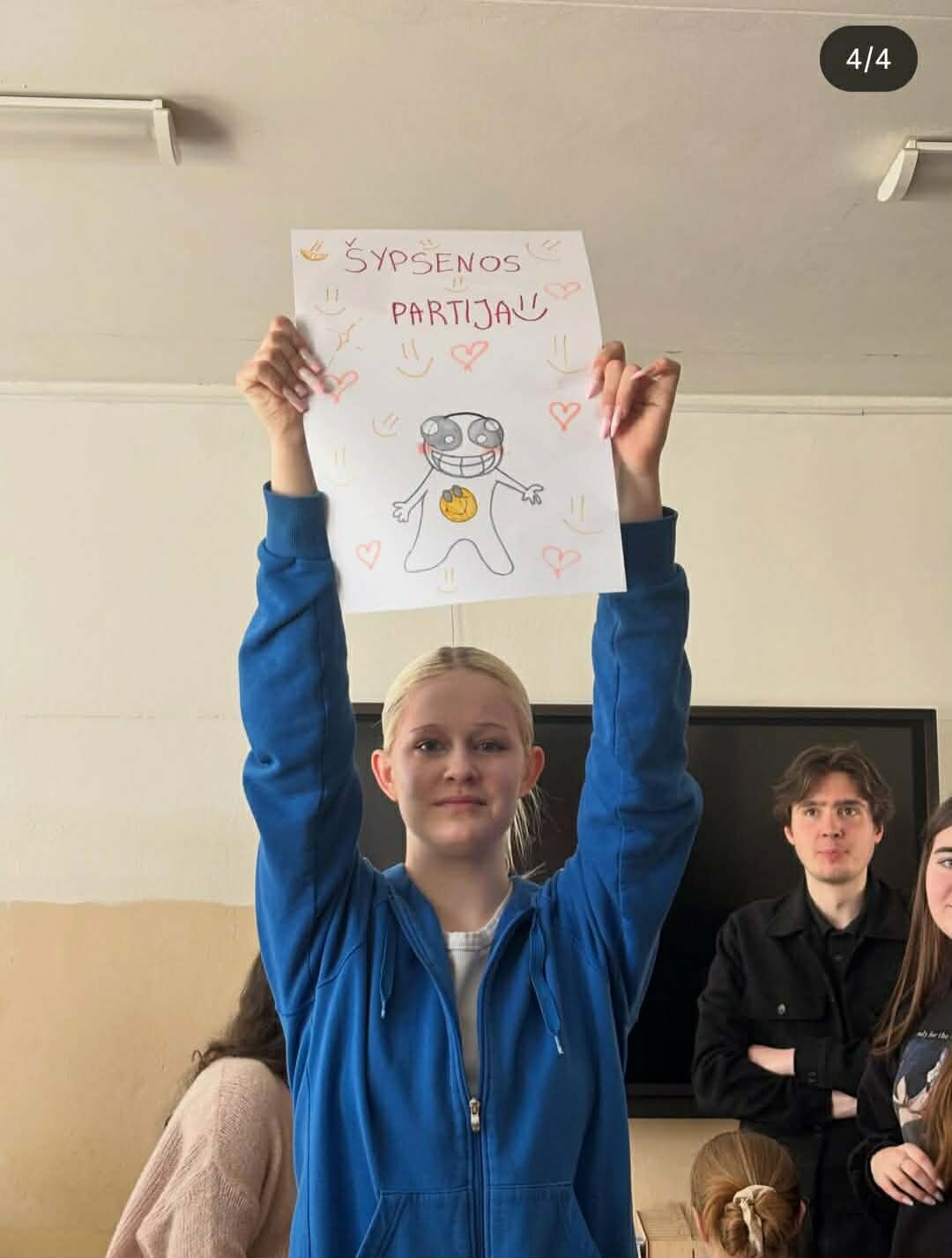 - Agitacija: pertraukų metu mokykloje virė diskusijos. Kandidatai ne tik klijavo plakatus, bet ir dalyvavo debatuose, pristatydami savo vizijas.