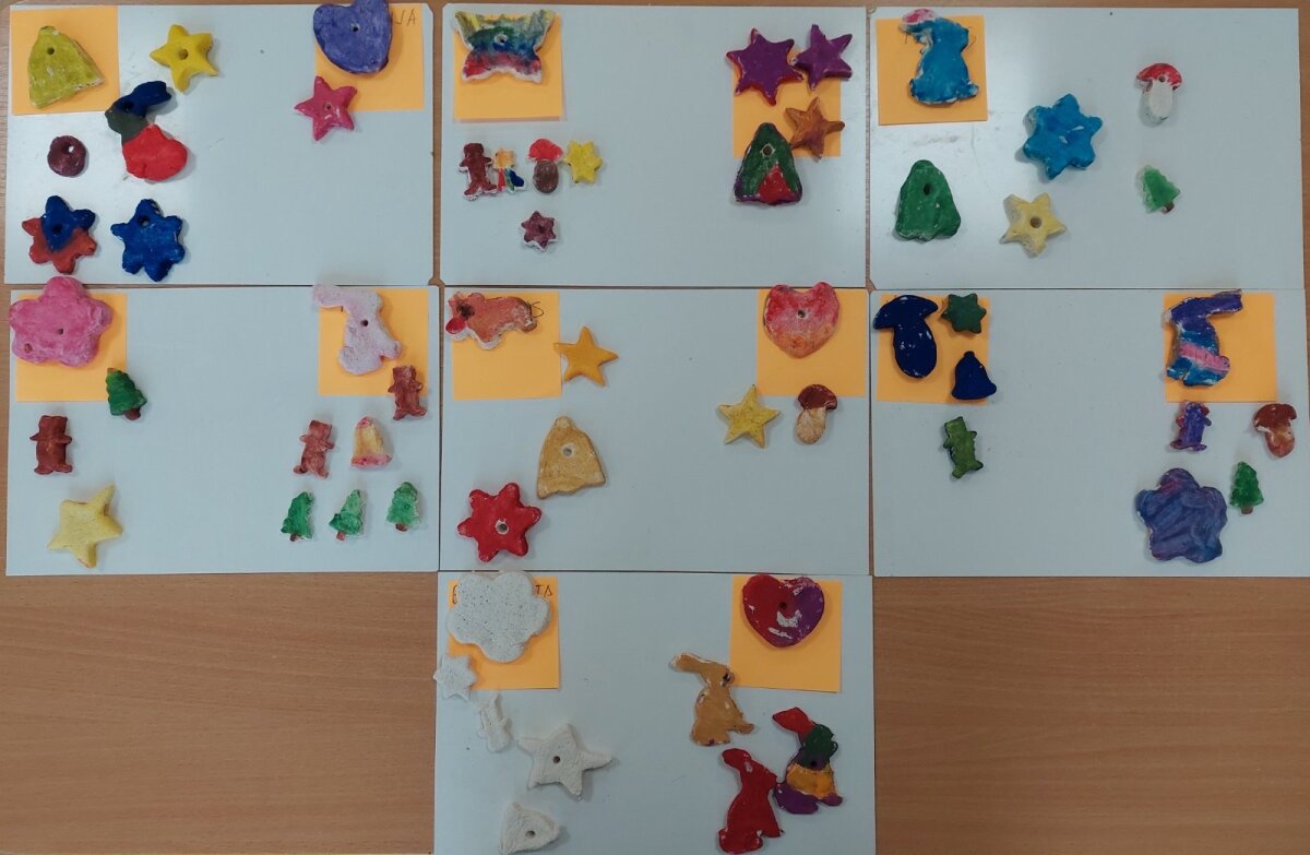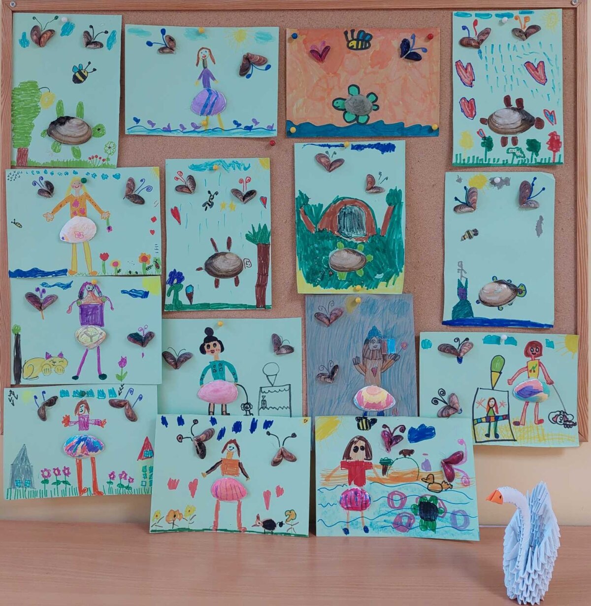 Vaikai kūrė spalvingus paveikslėlius iš kriauklių, kruopščiai lankstė ir puošė popierines puokštes bei dėžutes, gamino tradicines verbas, lipdė žaisliukus iš sūrios tešlos.