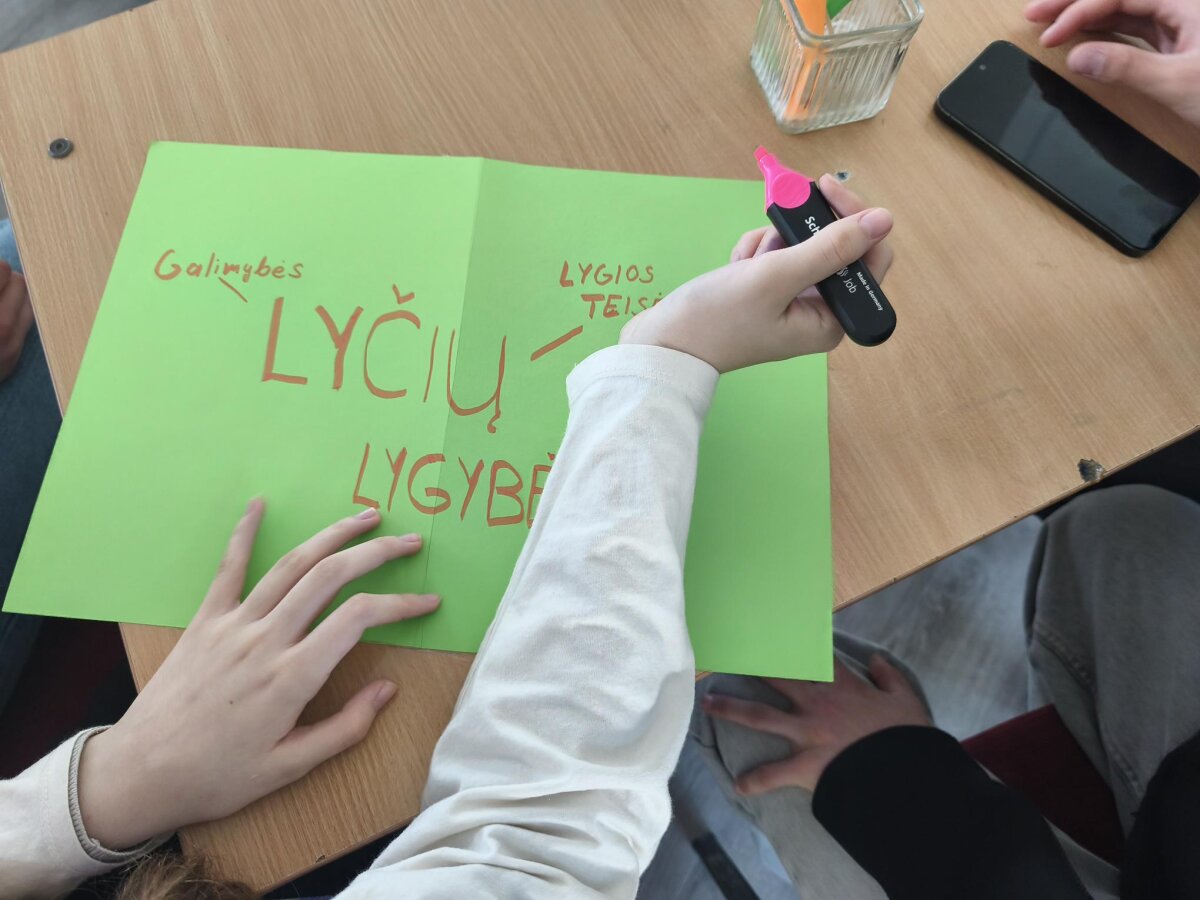 Renginys pradėtas įvadu apie tai, kas yra lyčių lygybė, vėliau aptarta stereotipų sąvoka. Mokiniai, suskirstyti į komandas, gavo skirtingas situacijas, kurias turėjo pristatyti.