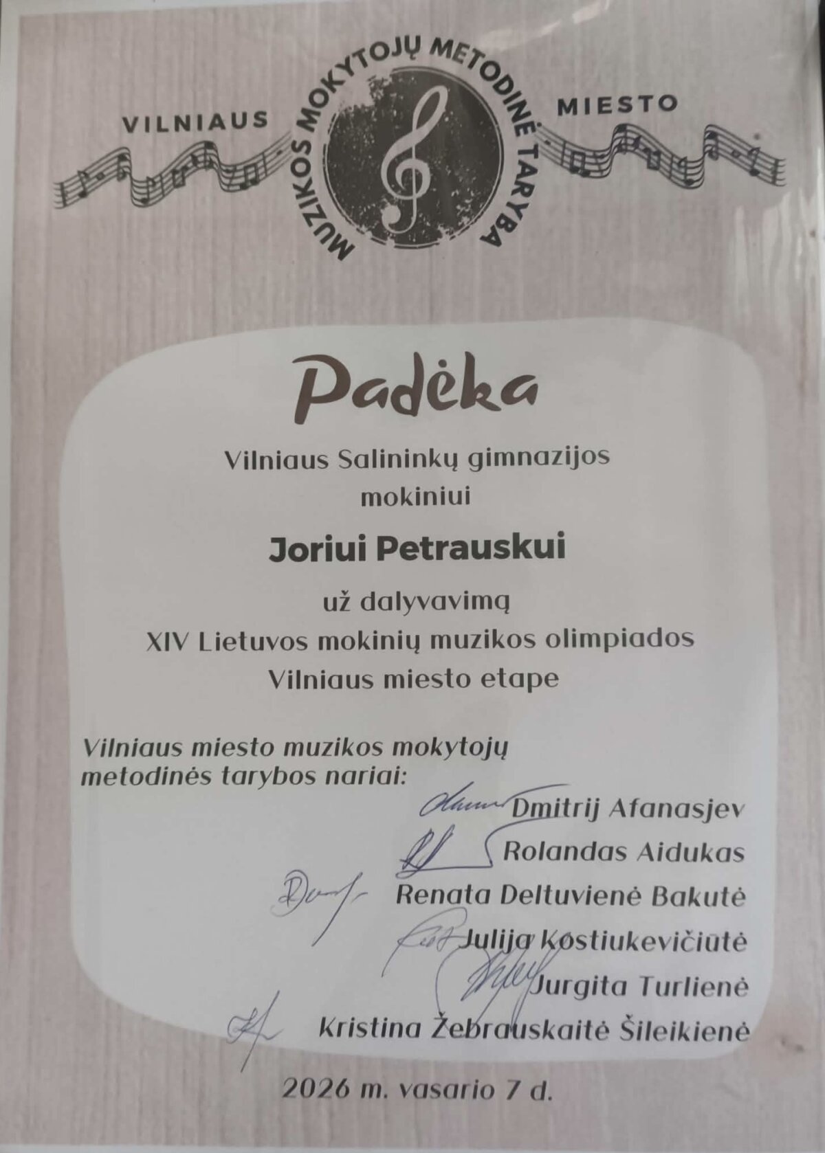 Nuoširdžiai sveikiname Jorį, džiaugiamės ir didžiuojamės jo pasiekimais bei linkime sėkmės respublikinėje muzikos olimpiadoje!