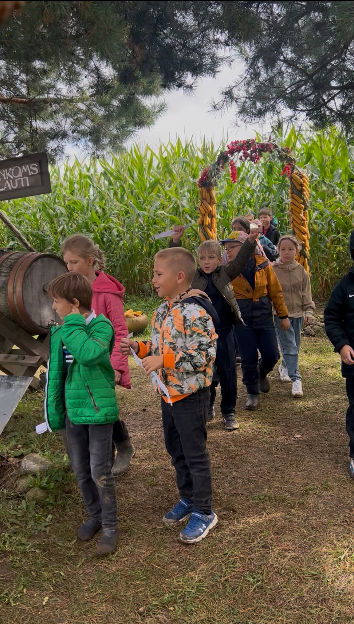 Rugsėjo aštuonioliktą dieną gimnazijos antrokai tapo tikrais nuotykių ieškotojais – keliavo į kukurūzų labirintą, kuris šiemet buvo virtęs paslaptingu žvaigždynų lauku. Įžengę pro didelę šiaudinę arką, antrokai leidosi į beveik du kilometrus trunkančią kelionę, kurios metu turėjo rasti dvylika stotelių, pasislėpusių tarp aukštų kukurūzų. Sėkmingai ištrūkę iš kukurūzų raizgalynės, mokiniai pasinėrė į senovės kaimo darbus: išbandė jėgas su burbuolių gliaudykle, patys malė miltus girnomis ir pajuto, kaip sunkiai dirbo mūsų proseneliai.