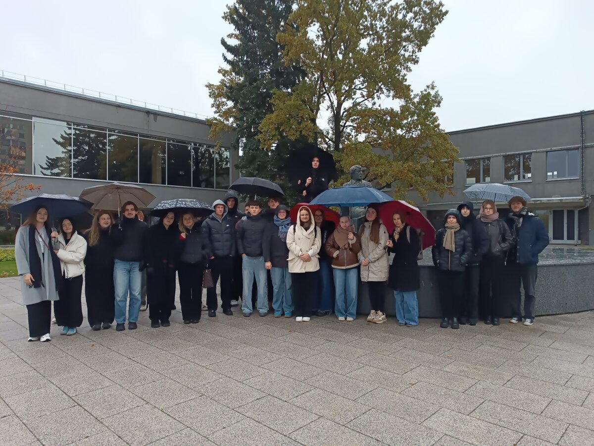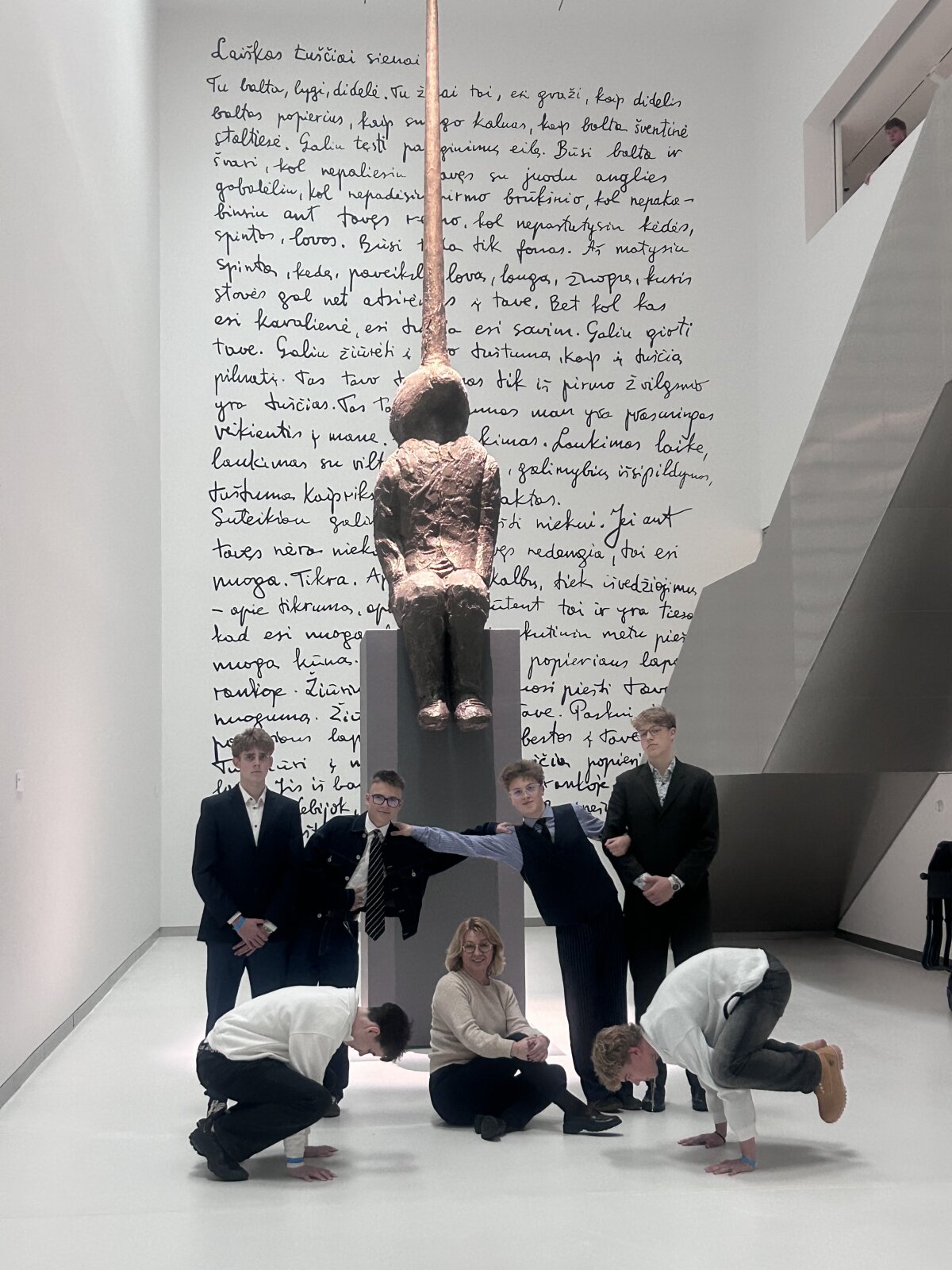 Spalio 23 d. II A, B, III A, IV A, B klasių mokiniai vyko į Panevėžį. Kelionės tikslas – meno patirtys, kurios prasidėjo Stasio Eidrigevičiaus menų centre. Gimnazistai netrukus pajuto, kad centro, kaip ir menininko, siekiamybė skleisti meną kaip žmogaus vidinio pasaulio atspindį. ,,Veidas – tai mano kaukė, o kaukė – mano veidas“, – yra sakęs Eidrigevičius. Šios idėjos išraiškas galima buvo tyrinėti muziejaus erdvėse bei kurti meno dialogą. Įkvėpti, sužavėti gimnazistai patraukė į Juozo Miltinio dramos teatrą, kuriame turėjo progą pasmalsauti ir apžiūrėti teatro pagalbines patalpas: grimo kambarį, siuvyklą, rekvizitų ir kostiumų, technikų patalpas. Galiausiai stabtelėti paties režisieriaus J. Miltinio darbo kambaryje. Meno patirtis vainikavo spektaklio ,,Tas keistas nutikimas šuniui naktį“ (pagal M. Haddon romaną) peržiūra. Šviesomis, projekcijomis, įtaigia aktorių kūno kalba buvo kuriamas kitoks autistiško Kristoferio pasaulio suvokimas.