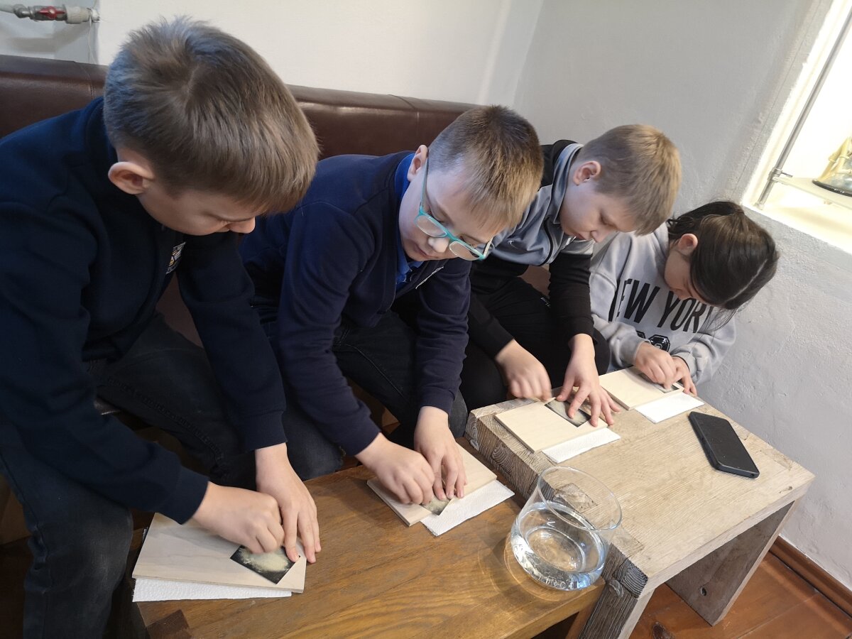 Vėliau atliko praktinę užduotį – gamino sėkmės amuletą. Gintaro gabalėlius šlifavo, blizgino, vėrė ant virvutės ir sugalvoję norą pasipuošė savo rankų darbo amuletu. Siekdami, kad norai išsipildytų, pagal seną tradiciją gintaro dulkes metė į ugnį.