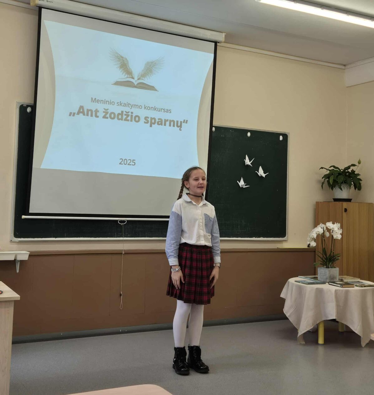 Mokiniai deklamavo Sauliaus Poškos, Zitos Gaižauskaitės, Martyno Vainilaičio eilėraščius, ištraukas iš pasakų ir kitų grožinių kūrinių. Raiškus mokytojų žodis taip pat palietė mokinių širdis – puikiai pasirinktus kūrinius pristatė mokytojos D. Dubasienė, N. Ramonienė ir G. Liutkevičienė. Komisijos narė, lietuvių kalbos ir literatūros mokytoja I. Griškevičienė, pasidalijo mintimis apie poetų Janinos Degutytės, Pauliaus Širvio ir Henriko Radausko kūrybą – apie tai, kaip šie poetai kūrė eiles.