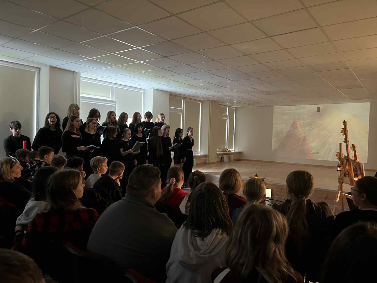 Spalio 31 d. gimnazijos aktų salėje skambėjo rudens tyla ir kūrybos šviesa – vyko meninis renginys „Rudens sonata Čiurlioniui“, skirtas M. K. Čiurlionio kūrybos dvasiai pagerbti.