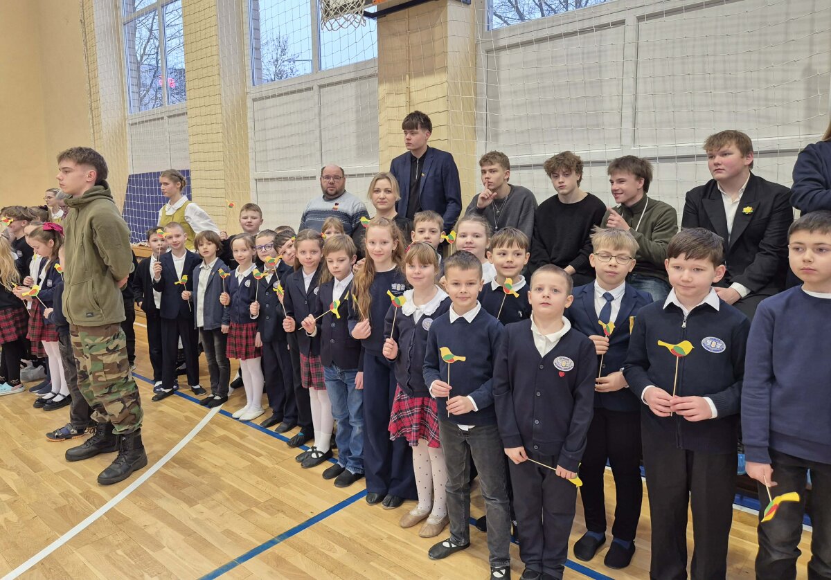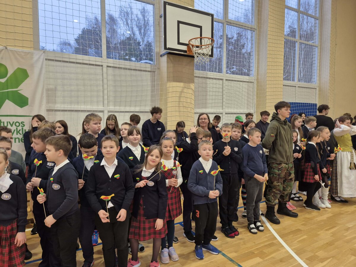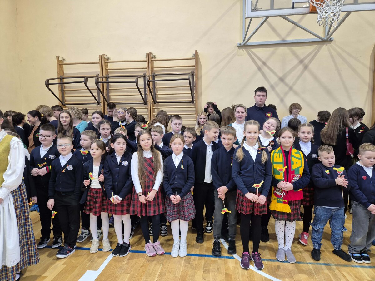 Puoselėjant ilgametę tradiciją, visi mokiniai susirinko sporto salėje ir kartu giedojo Tautinę giesmę. Per rankas keliavo Lietuvos trispalvė. Renginį papuošė gimnazijos šokių kolektyvų pasirodymai ir skambėjusios dainos.