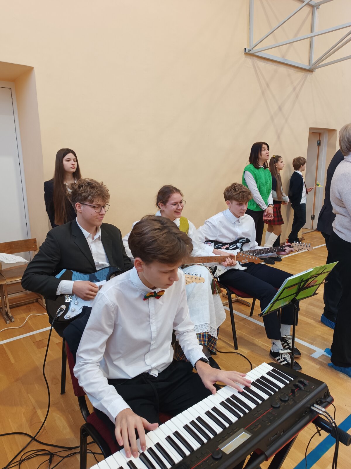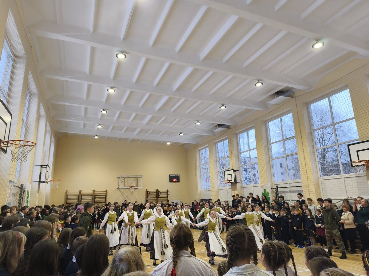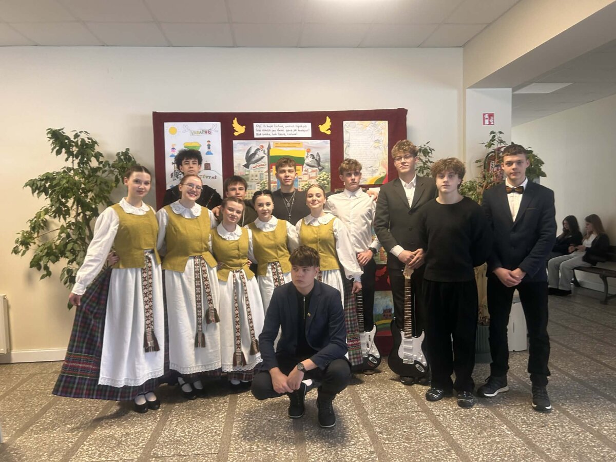 Puoselėjant ilgametę tradiciją, visi mokiniai susirinko sporto salėje ir kartu giedojo Tautinę giesmę. Per rankas keliavo Lietuvos trispalvė. Renginį papuošė gimnazijos šokių kolektyvų pasirodymai ir skambėjusios dainos.